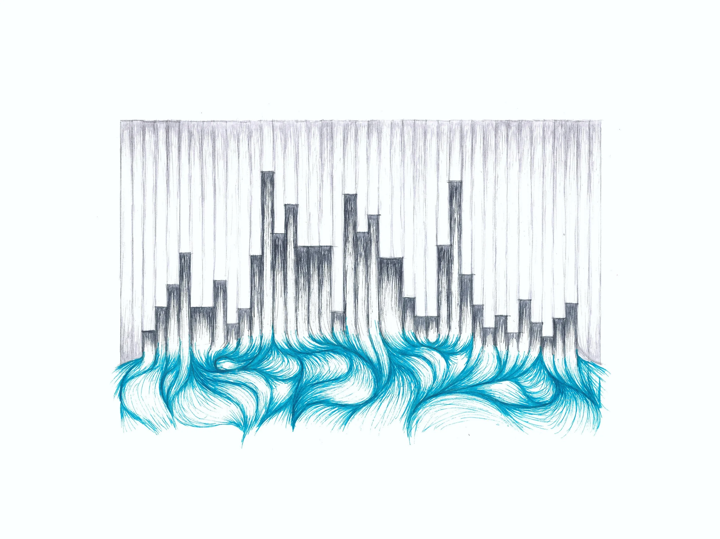 2022, Pen and marker on recycled stock photography, 14”x18”